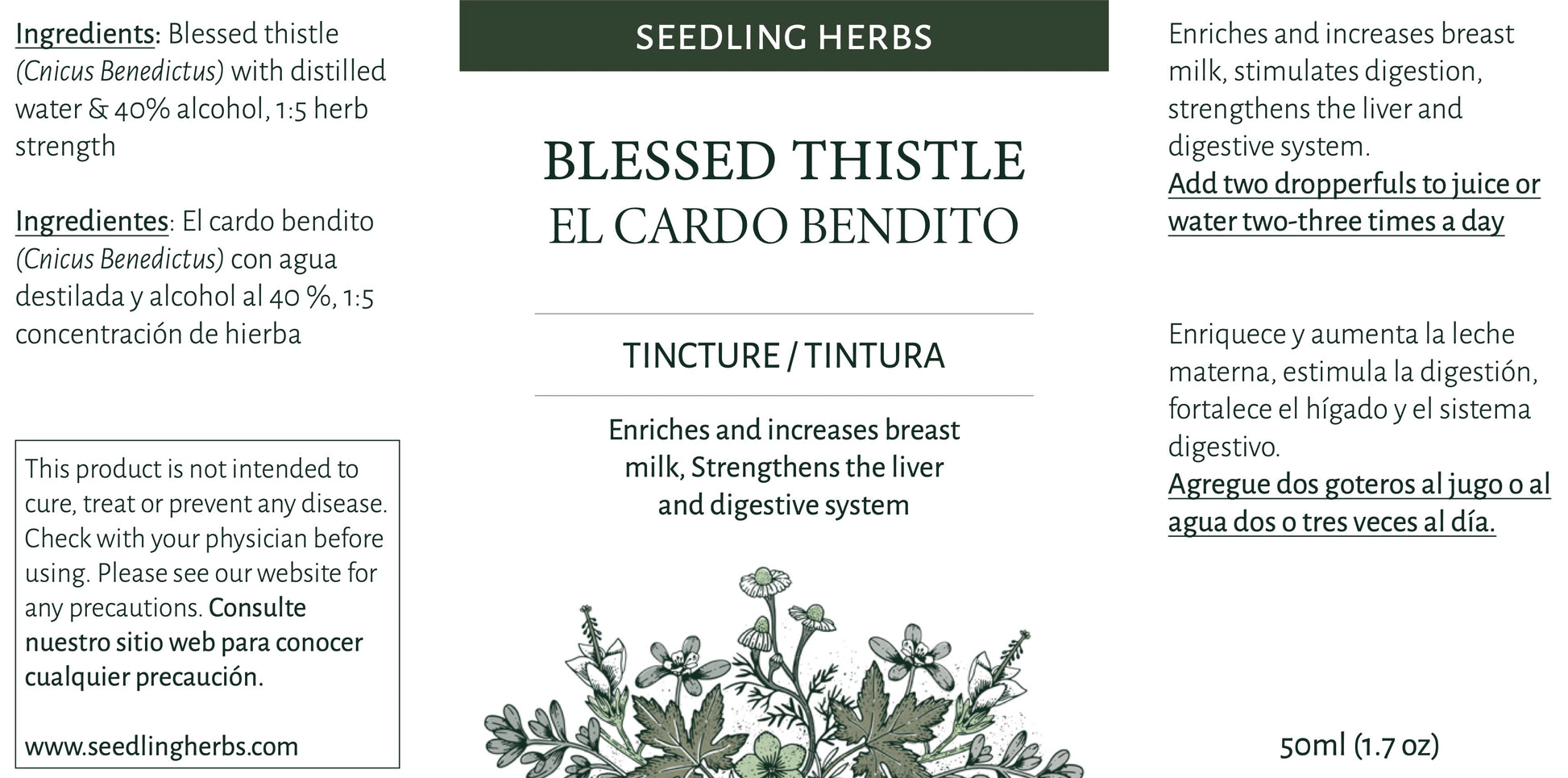 Ingredients: Blessed thistle (Cnicus Benedictus) with distilled water & 40% alcohol, 1:5 herb strength