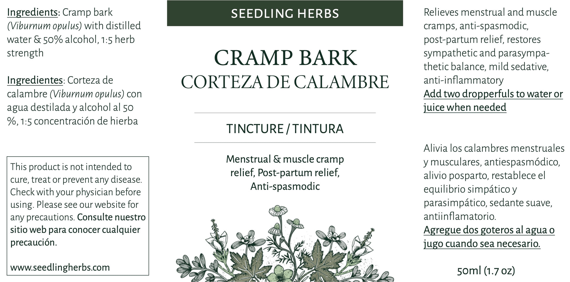 Ingredients: Cramp bark (Viburnum opulus) with distilled water & 40% alcohol, 1:% herb strength