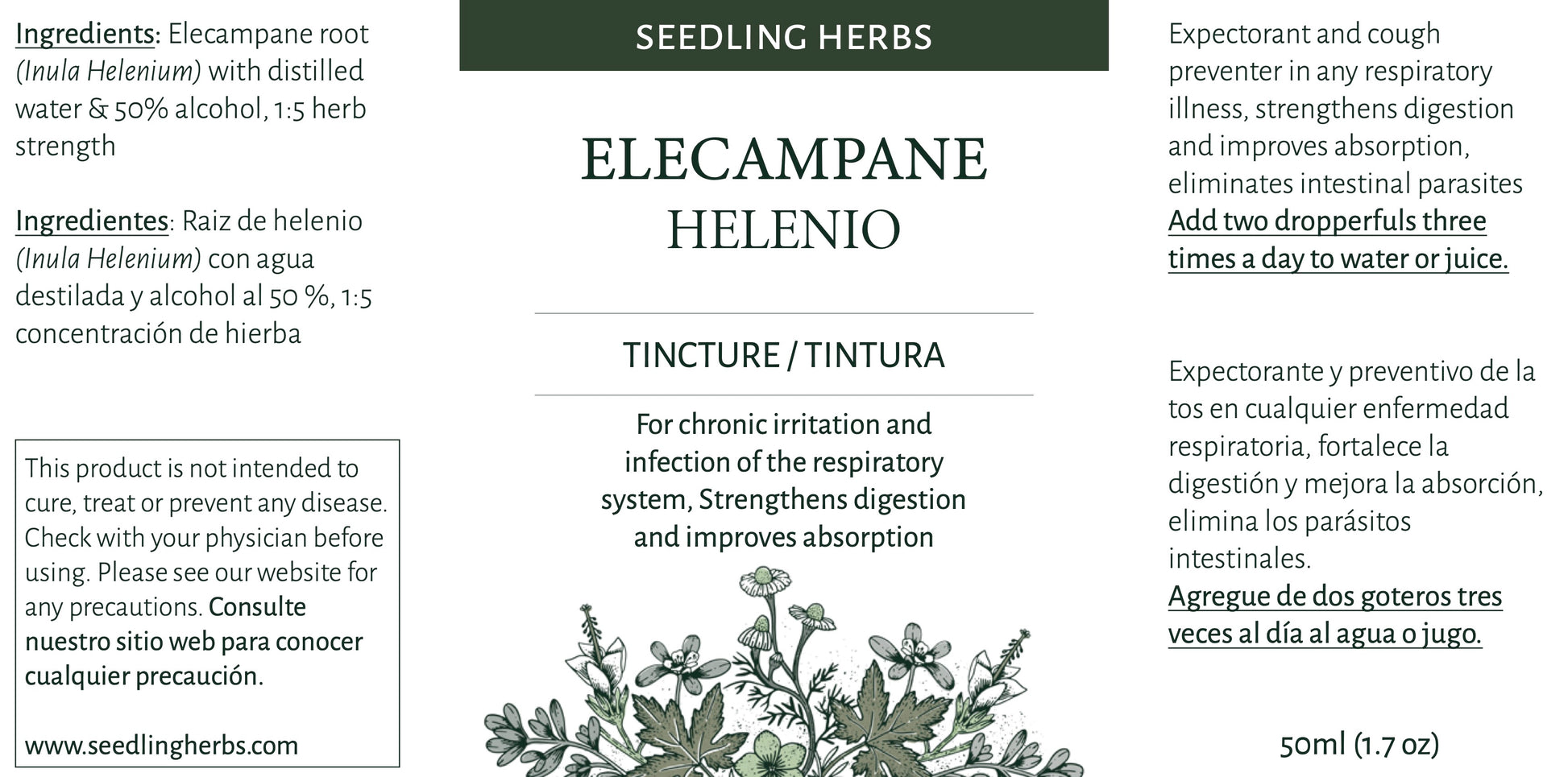 Ingredients: Elecampane root (Inula Helenium) with distilled water & 50% alcohol, 1:5 herb strength