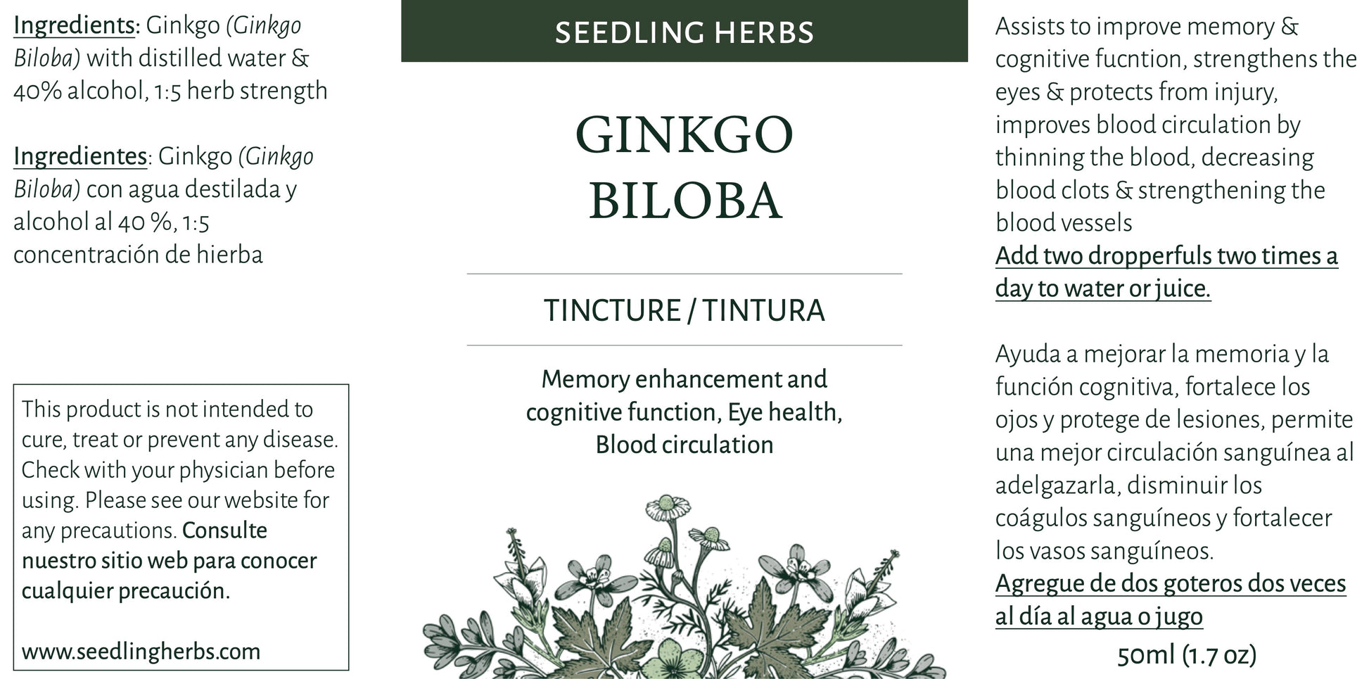 Ingredients: Ginkgo (Ginkgo Biloba) with distilled water & 40% alcohol, 1:5 herb strength