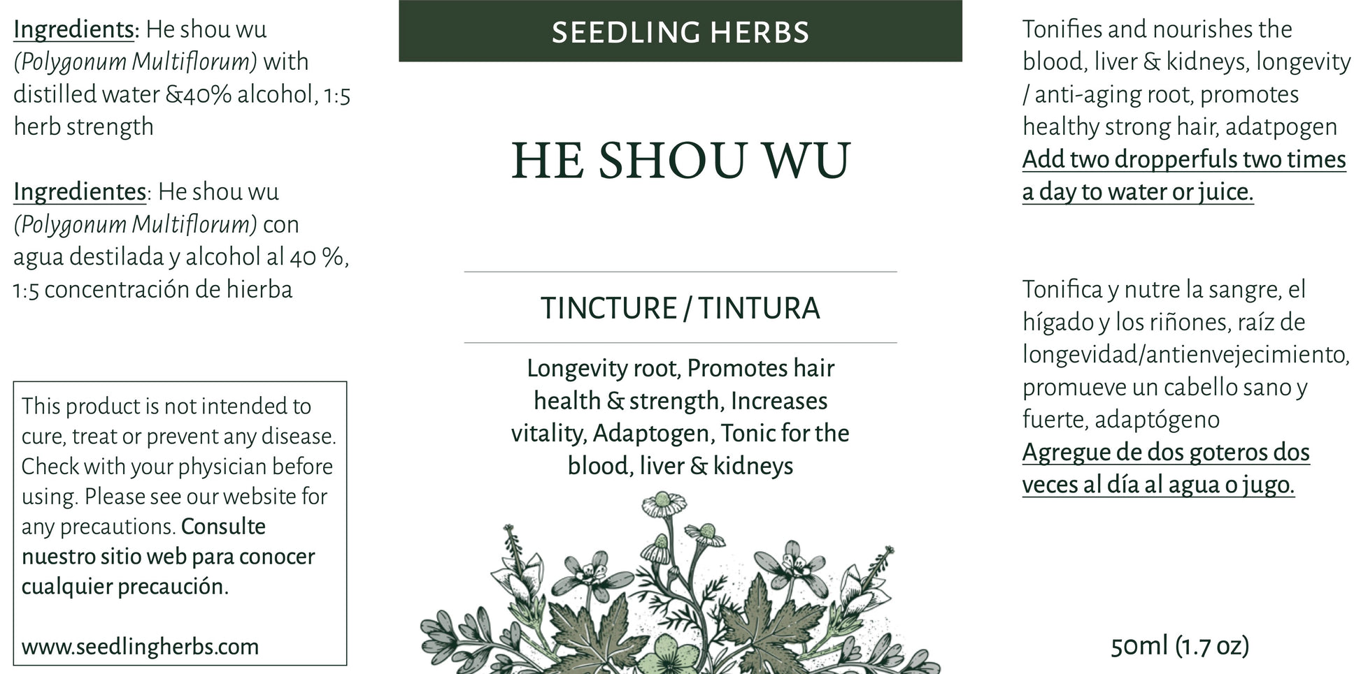 Ingredientes: He shou wu (Polygonum Multiflorum) con agua destilada y alcohol al 40 %, 1:5 concentración de hierba