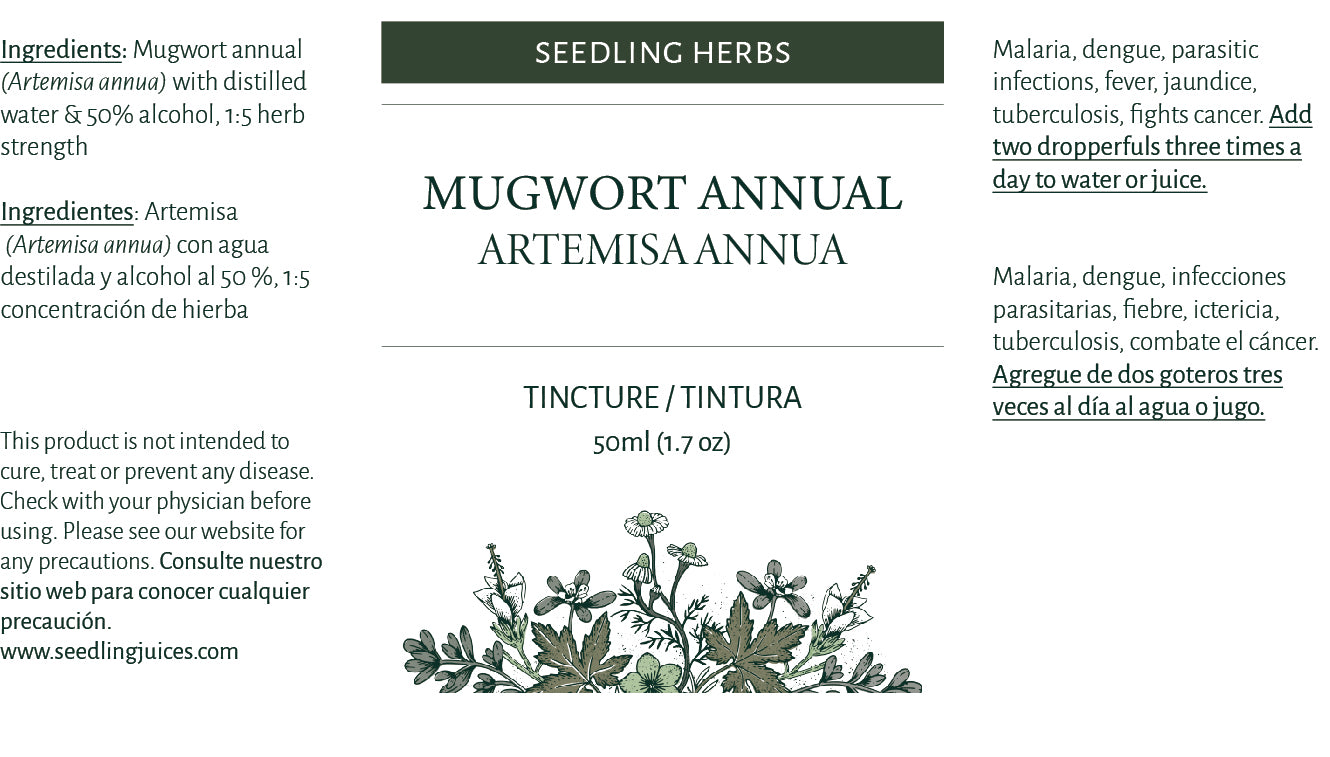 Ingredients: Mugwort annual (Artemisa annua) with distilled water & 50% alcohol, 1:5 herb strength